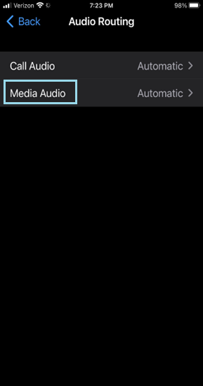 - Adjust Audio Routing. Set Media Audio to Never Hearing Devices for proper setup.