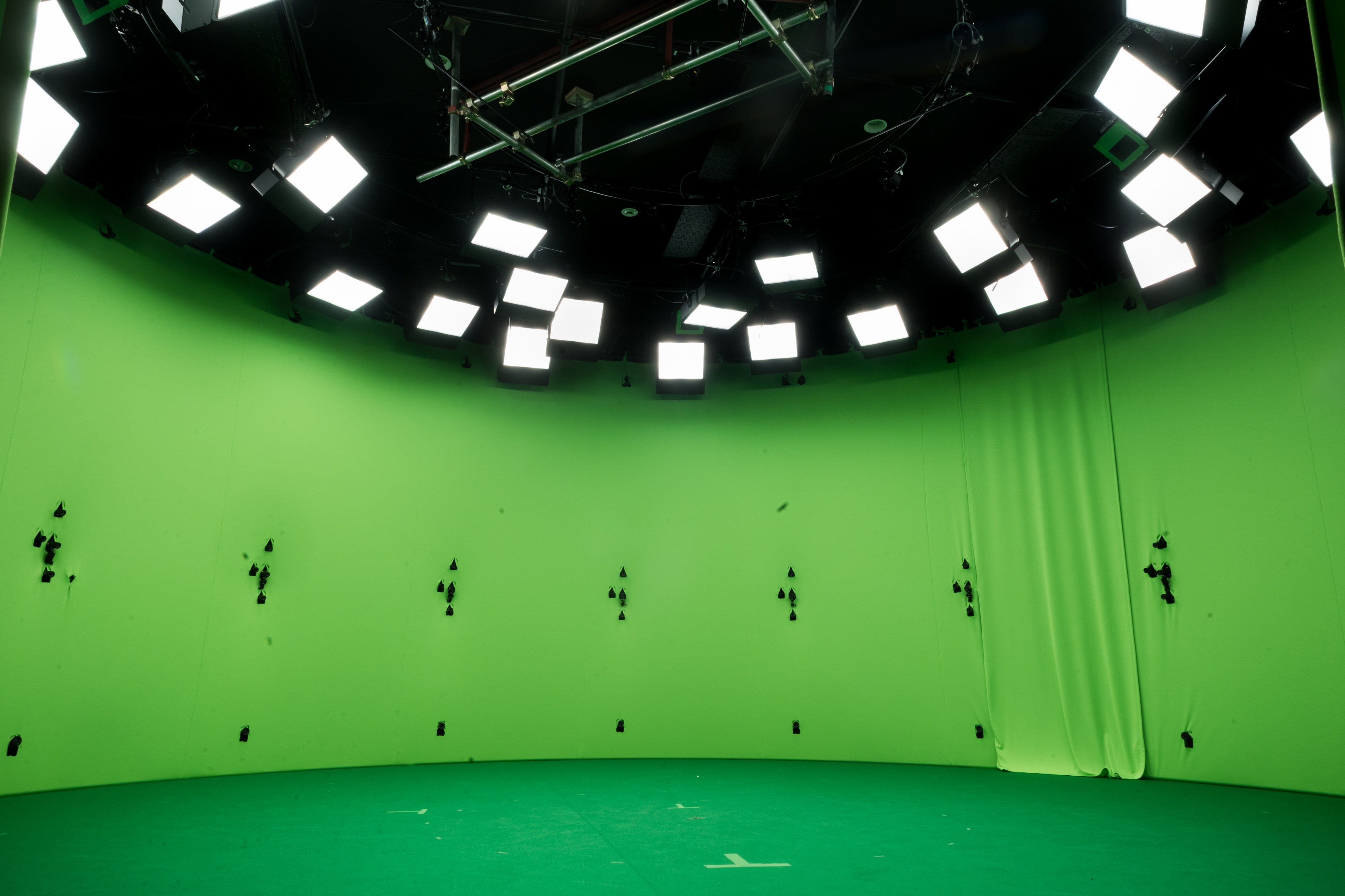The VP studio (left) and Volumetric Capture studio (right) at KIYOSUMI-SHIRAKAWA BASE. The Volumetric Capture studio was installed next to the VP studio in 2022, and in 2023 the VP studio was enhanced with improvements such as an expanded LED wall.