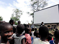 In Cameroon we teamed up with the UNDP (United Nations Development Programme) and visited four areas, including upcountry areas, where we screened eight matches in total. In Ghana we worked with JICA (Japan International Cooperation Agency). There we toured 15 areas, including some remote areas without electricity, to provide the local people with 18 match broadcasts.