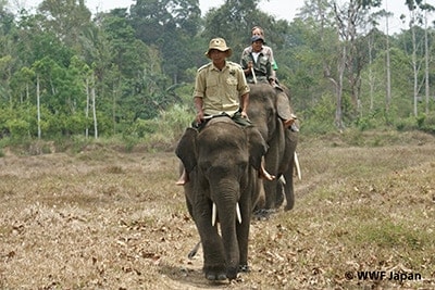 In Sumatra, patrols are made by mahouts (elephant trainers) astride trained elephants to uncover illegal activity in national parks such as occupation of land and poaching, and to keep wild animals away from villages near the parks where people live. In 2014, the patrols managed to prevent the intrusion of wild animals into residential areas in 229 cases. The program includes the development of female mahouts and spread of the patrols to other areas having problems with the intrusion of wild animals.