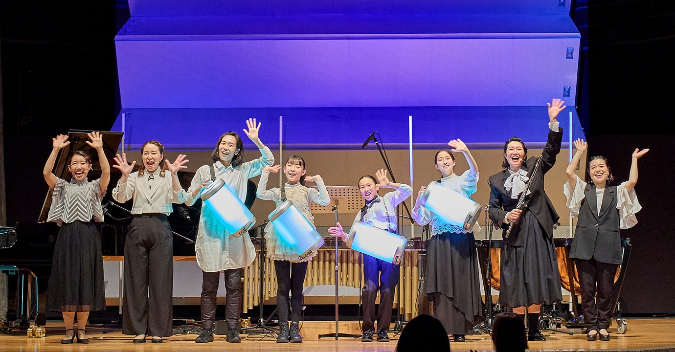 With all the preparations made, the day of the concert finally arrived. Taking the stage first were four workshop leaders from Tokyo Bunka Kaikan—musical specialists dedicated to enabling everyone to enjoy music, whether playing or listening.
