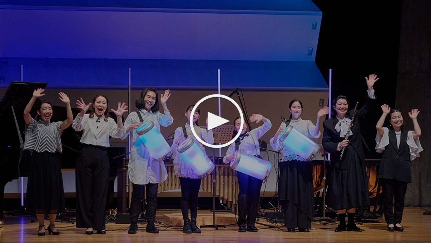On March 4, 2025, the Recital Hall at Tokyo Bunka Kaikan in Ueno, Tokyo, played host to a free online concert unlike any other. Titled "Come Join a Concert! Where You Can Watch Music and Listen to Video Projection," the event offered a new brand of musical experience that enabled audiences with hearing disabilities to experience music with their eyes. The performance incorporated various instruments, including the Hug Drum—developed by the Sony Group Creative Center—which transforms sound into light and vibration. Participants, including children and adults, people with and without hearing disabilities alike, performed with the Hug Drum alongside workshop leaders from Tokyo Bunka Kaikan.