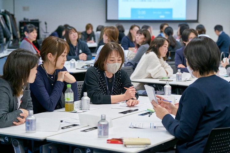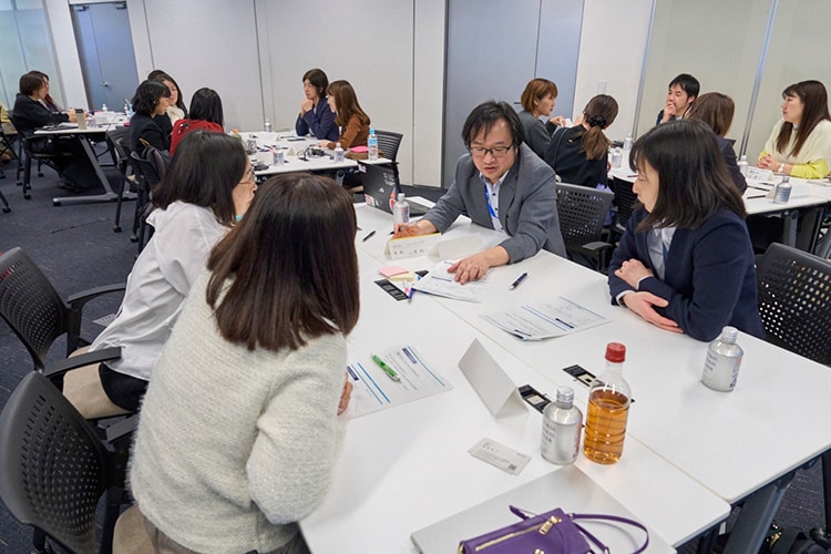 Next, an event was held with Ms. Kayo Fujiwara from the University of Tokyo as facilitator. Each participant reflected on their careers and introduced themselves, listening a lecture on inclusive leadership, shared their own strengths and weaknesses, actions they will put into practice and advice. During the group discussions, one male and one female general manager sat at each table to support the exchange of opinions, creating an opportunity for wider networking.