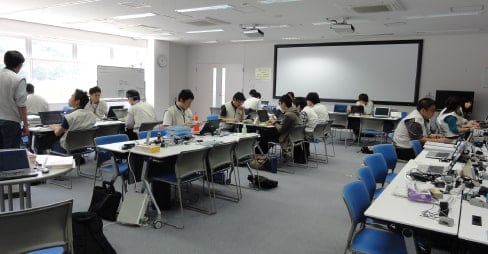 Because the office was unavailable due to damage from the Great East Japan Earthquake, the whole team worked in the meeting room until the restoration was complete