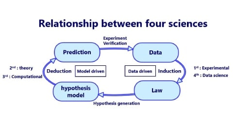 Conventionally, experimental science was used to reveal patterns and laws in data and to formulate hypotheses, or theoretical and computational sciences were used to make predictions. On the other hand, materials informatics repeats the cycle of discovering the law of pattern in data, formulating a hypothesis, making predictions, and creating data. Data is the critical element in the process, and growing emphasis is placed on how AI is used to uncover patterns in data in recent years. When speaking of materials informatics, people often think of AI, but as mentioned above, AI is not the be-all-end-all component; rather, it goes without saying that skillful use of AI is the key.