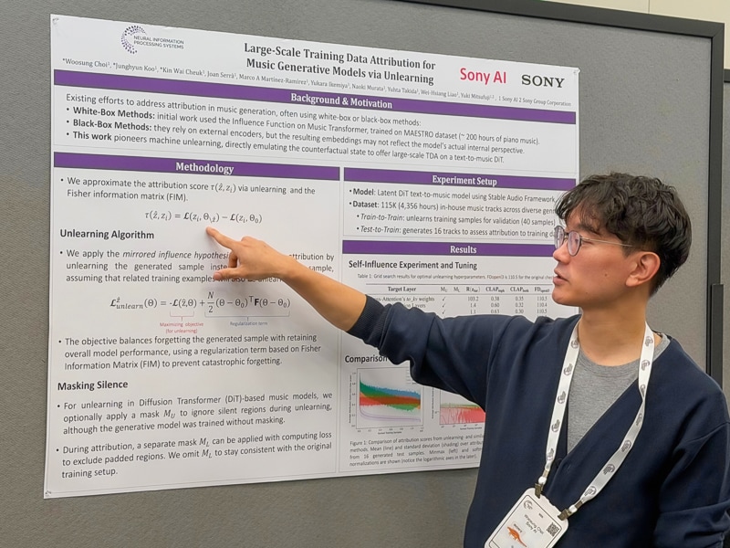 Woosung Choi (Sony AI), presenting the Large-Scale Training Data Attribution for Music Generative Models via Unlearning poster