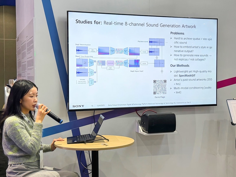 Chihiro Nagashima (Sony Group Corporation), presenting ‘Studies for’: A Human-AI Co-Creative Sound Artwork Using a Real-time Multi-channel Sound Generation Model at Sony booth