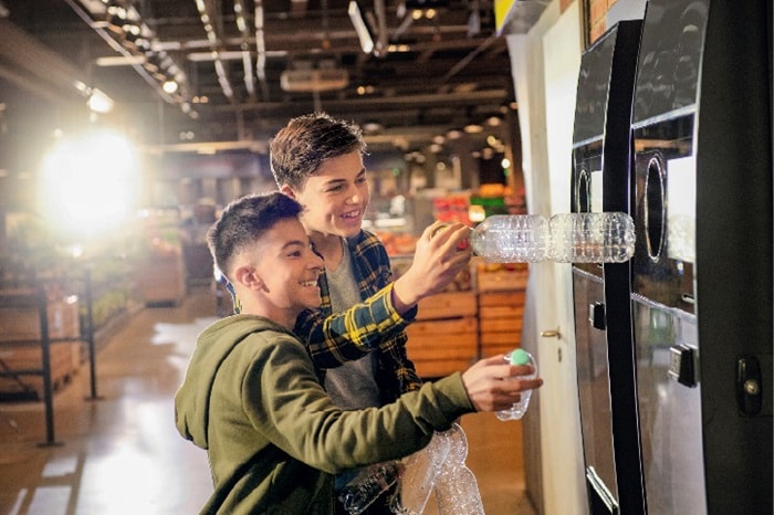 プラスチックの資源循環をめぐるソニーの取り組みは、実は別の形でも私たちの身近に存在します。それは近年、スーパーやコンビニエンスストアなどで目にすることの多い、ペットボトルの自動回収機です。