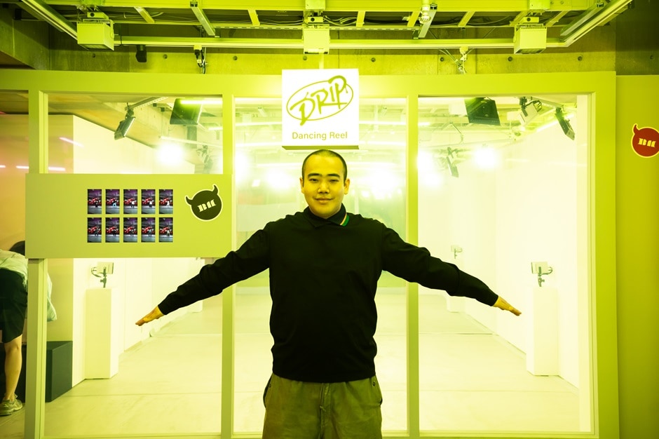 また、「DRIP」の動画に合わせて来園者自身のデジタルアバターが踊る動画を生成できる `DRIP' Dancing Reelは、実は写真シール機から着想を得た体験です。ソニーの3Dキャプチャー技術である「可搬型ボリュメトリックシステム」を活用して、十数秒の撮影を行うことで、来園者の姿を3Dデータ化し、動画を創り出します。