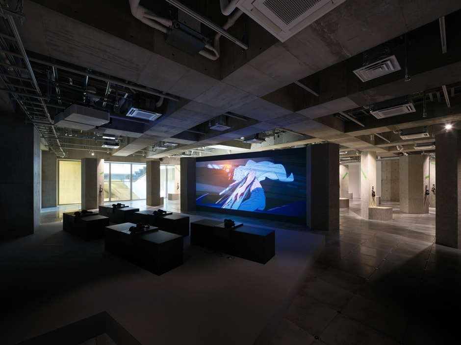 空間の奥にはミニシアターがあり、牛尾が音楽を担当した2025年9月19日全国公開の新作アニメ劇場版『チェンソーマン レゼ編』のトレーラー作品をソニーのテクノロジーとの組み合わせで楽しめます。「190インチの大型スクリーンで迫力ある映像を見ながら、臨場感豊かな音場を実現するソニーの立体音響技術を活用した『360 Reality Audio』でミックスした音と、ソニーの触覚提示技術を使った繊細な振動を創り出す床がシンクロする仕掛けのある視聴体験を作りました。また、ここで聴ける音源は、牛尾さんご自身にスタジオでのミックス作業に立ち会っていただいて制作したものです」(大矢)