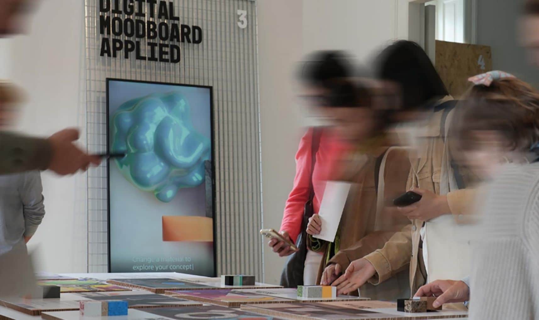 今回の「CREATE MORE FUN」では、この活動の中でデザイナーが導き出した8つのCMFクラスターを、キュレーションした素材のコレクションと共に紹介しました。会場は2つのゾーンに分かれており、それぞれのゾーンでデザインのインスピレーションを刺激する体験を提供しました。1つ目のゾーンでは、クリエイティブセンターの「CMFフレームワーク」の変遷をライブラリと最新のツールで紹介。2つ目のゾーンでは、テクノロジーを用いて「CMFフレームワーク」をインタラクティブなデザインツールとして体験していただきました。