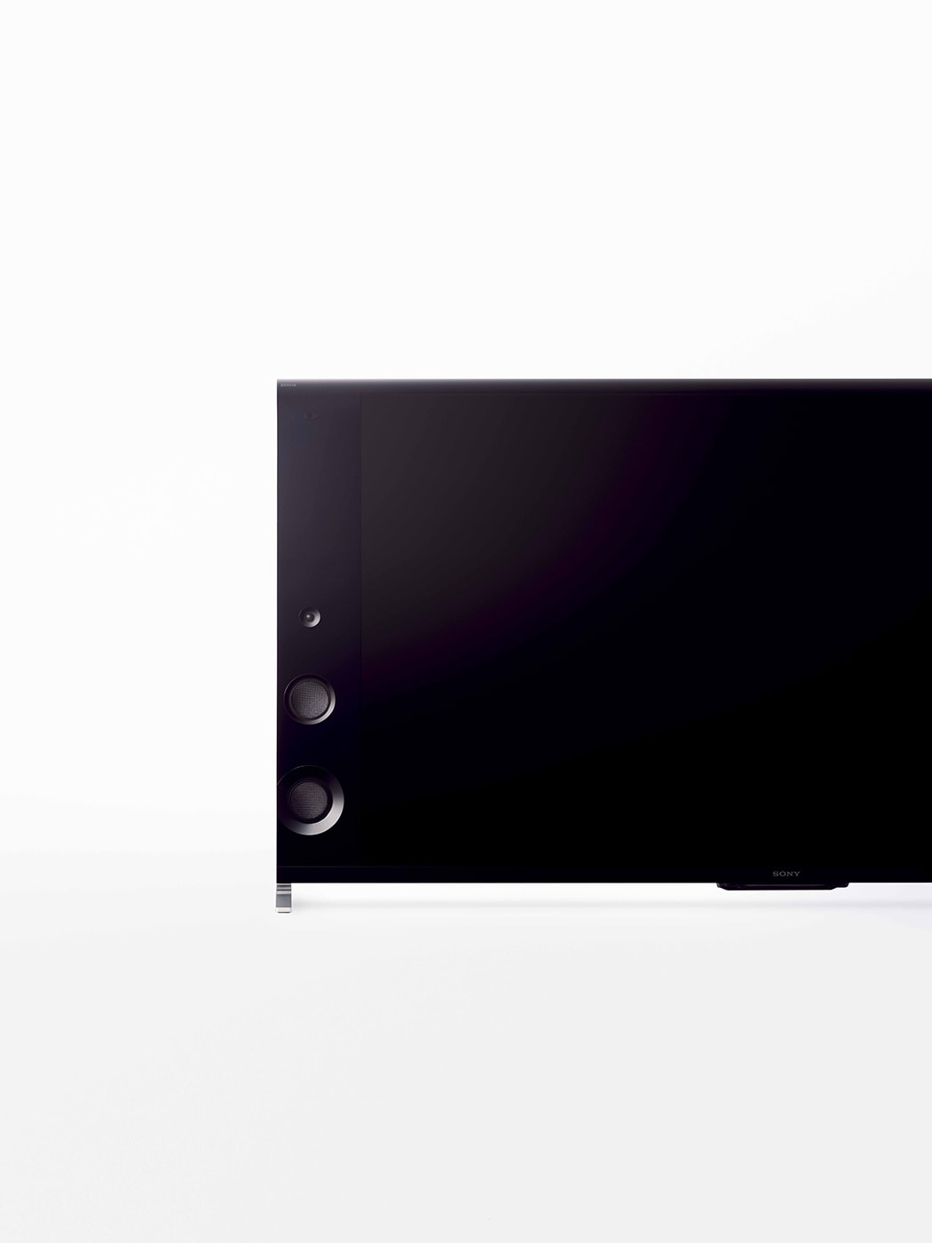 くさび形のボディを持つ「ウェッジデザイン」を採用した4Kテレビ。高音質の大容量スピーカーボックスを収納しているが、小さなスタンドで省スペースを実現した。付属のポートリプリケーターを使ってすべてのケーブルをすっきりと配線することができる。