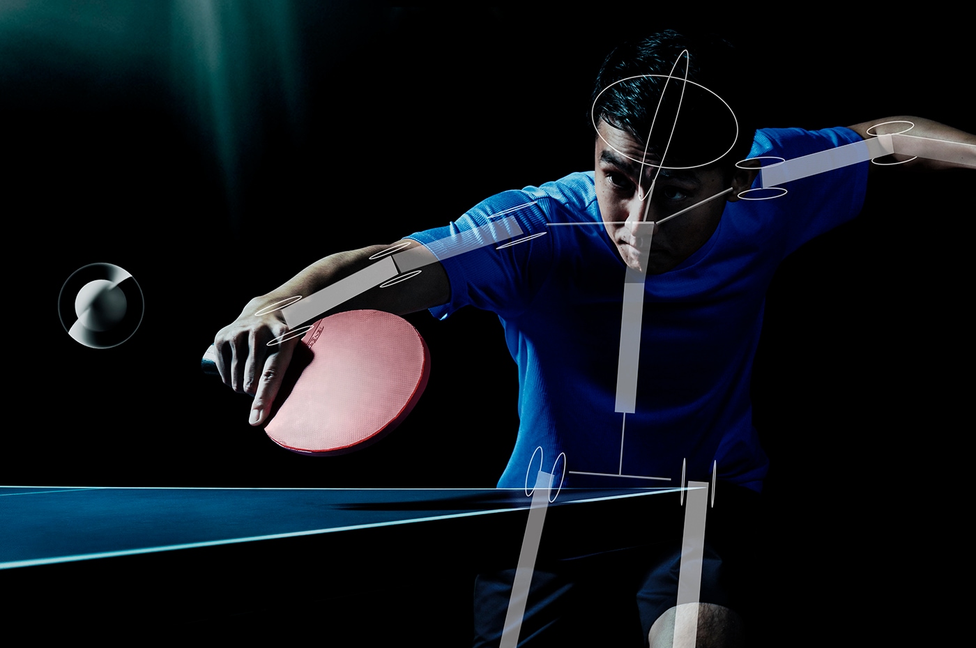 ソニーが国際的なテクノロジーの祭典 CES 2020に出展した、センサーとAIを用いたライブスポーツ制作の技術展示。卓球の試合を撮影しながら、物体認識/追跡処理を組み込んだ高速ビジョンセンサーと独自の骨格推定技術を使って、球や選手の動きをリアルタイムに解析し、これまで見えなかった球の軌跡、選手の骨格や姿勢を可視化したこのプロジェクトは「スポーツ放送の魅力向上にソニーのテクノロジーが生かせるのではないか」というデザイナーの社内提案からはじまったもの。