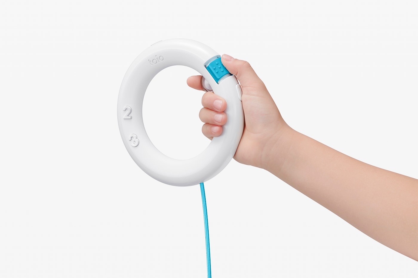子どもたちが自ら手を動かして遊び、考えながら夢中になる。その中で偶然の発見をして、もっと工夫したくなる。そんな「toio」の遊びが子どもたちにとって創意工夫の原体験になってほしいという気持ちを込めてデザインした。「青空の下は、どこでも遊び場になる」というコンセプトの元、ブランドカラーはスカイブルーで展開。音は未来的な電子音ではなく、アコースティックな木質楽器をイメージした温かみのある音を使用。リングのコントローラーは、裏でも表でも右手でも左手でも、ぱっと掴んで直感的に使用できる。