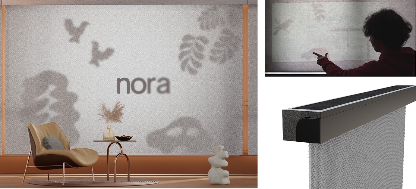 「nora」は、高度な音フィルタリング機能を備えたスマートカーテン。不要なノイズだけを選択して遮断することができ、集中したい時やリラックスしたい時など、ユーザーの状況に寄り添う音環境を実現します。個々のニーズに応じてカスタマイズできる、音響体験の新提案です。