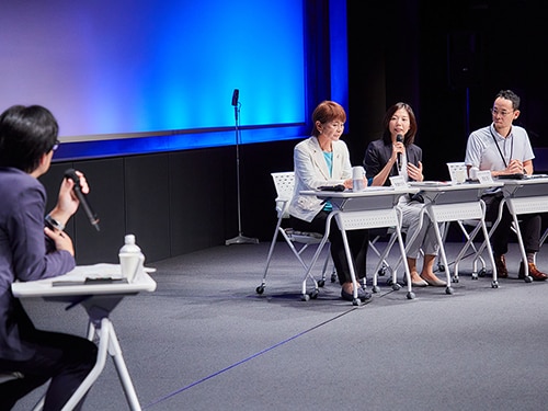 続いて、宇津木さん、阿部さん、石川さんによるクロストークが行われました。モデレーターを務めたソニーピープルソリューションズ株式会社 ダイバーシティ・エクイティ&インクルージョン推進室長の森からの「障がいのある人との最初の接点、そのとき思ったこと」の問いに、宇津木さんは「ソフトボール普及活動で特別支援学校に行ったときに、最初はどうやって接したらいいのかわかりませんでした。しかし、ソフトボールのやり方を教えたら、理解して寄ってきてくれて、障がいなど関係なく子どもたちと触れ合うことができました。また、全盲の5歳の子が試合を観にきてくれたときは、ボールを手渡してから、ソフトボールの話をしました。物や手などを使って、それぞれの人の個性の中で感じとれるようにしてあげることが大事だと思います」と述べました。