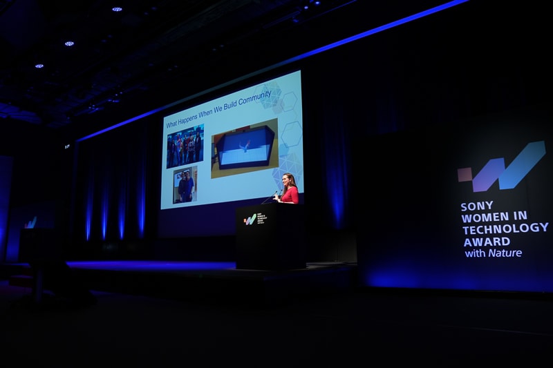 Sony Women in Technology Award with Natureのアワードセレモニーにてにて基調講演を行うAmanda氏