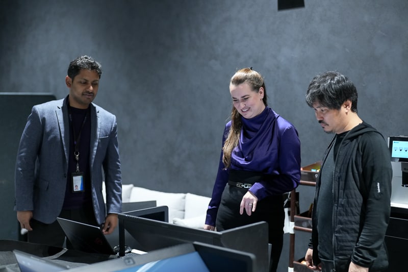Amanda氏とソニー株式会社のチームメンバーが、Spatial Reality Displayをレビューしている様子