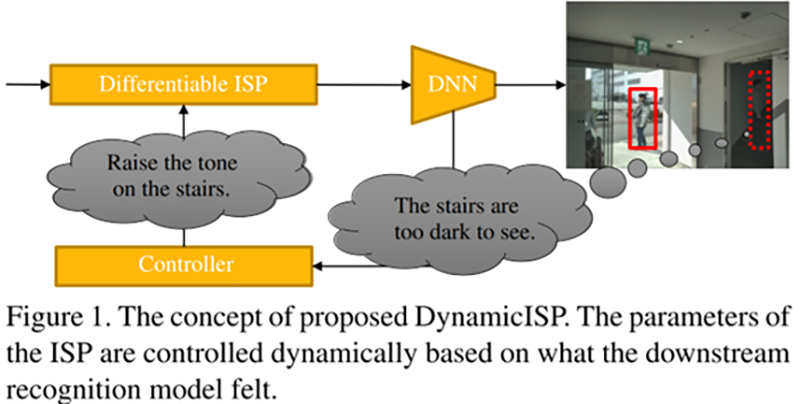 という2つの仮説に基づき、以下のように後段の認識器が画像についてどう感じたかの情報を取り出し、その情報を元にISPのパラメータを制御して認識しやすい画像を自ら作り出すということを行います。