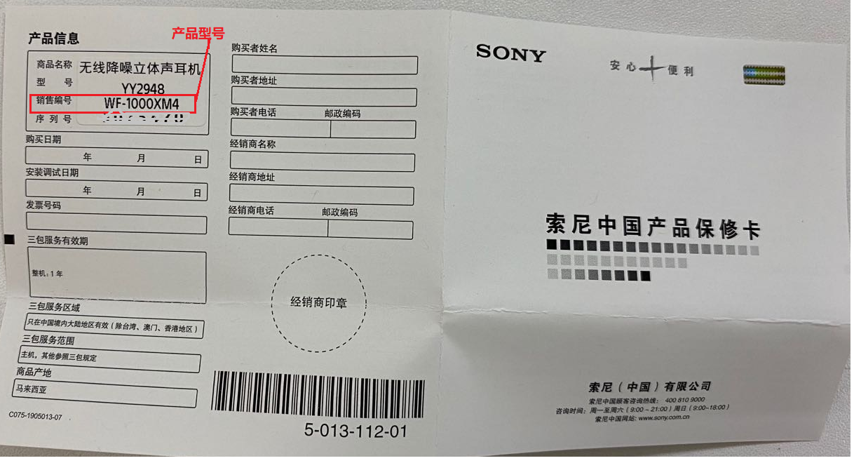 例:WH-1000XM3序列号需掀开耳罩查看 例:WF-1000XM6序列号