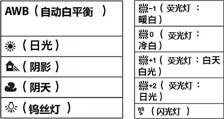 除 AWB 以外,相机预设了适合多种不同场景的白平衡设定。如 AWB无法呈现您预期的色彩,又或您想根据自己的喜好调整色调,请自行选择理想的白平衡设定。