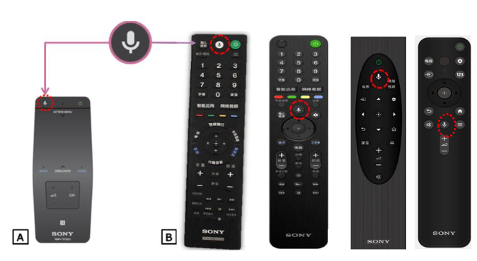 - 遥控器型号不同,麦克风的位置可能会不同,请以实际状况为准。具有语音功能的遥控器图示如下(下图仅为示例,并非所有遥控器机型)。