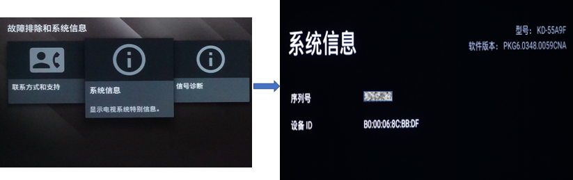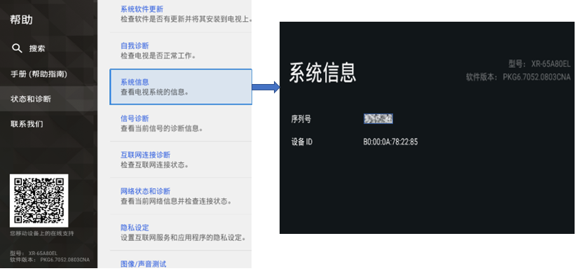 如果您需要查看电视机系统信息,例如电视机的型号、软件(固件)版本、设备ID或序列号等,可以按照以下方式进行查看。