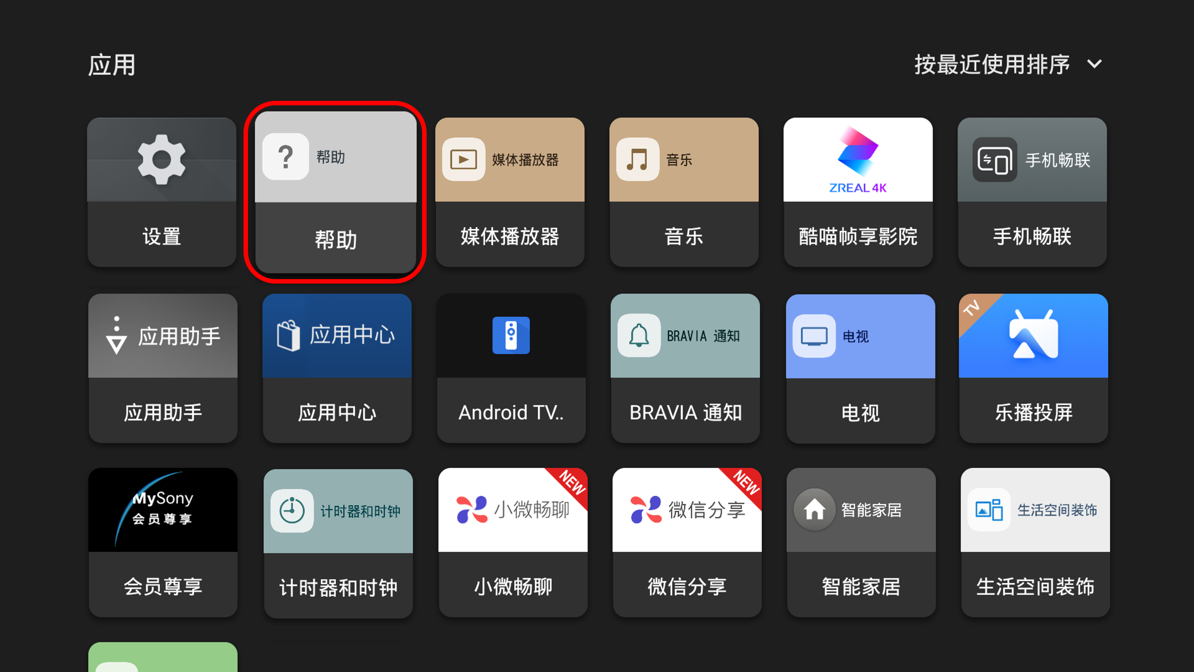 注意:如果您的电视遥控器上有“帮助”按键,也可按“帮助”按键直接进入帮助选项。