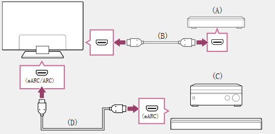 将音响系统连接到电视机上带有“eARC/ARC”字样的HDMI输入端子。