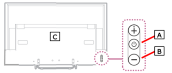 B:电视机有 3 个机身按钮:按钮位于电视机的左侧或右侧。