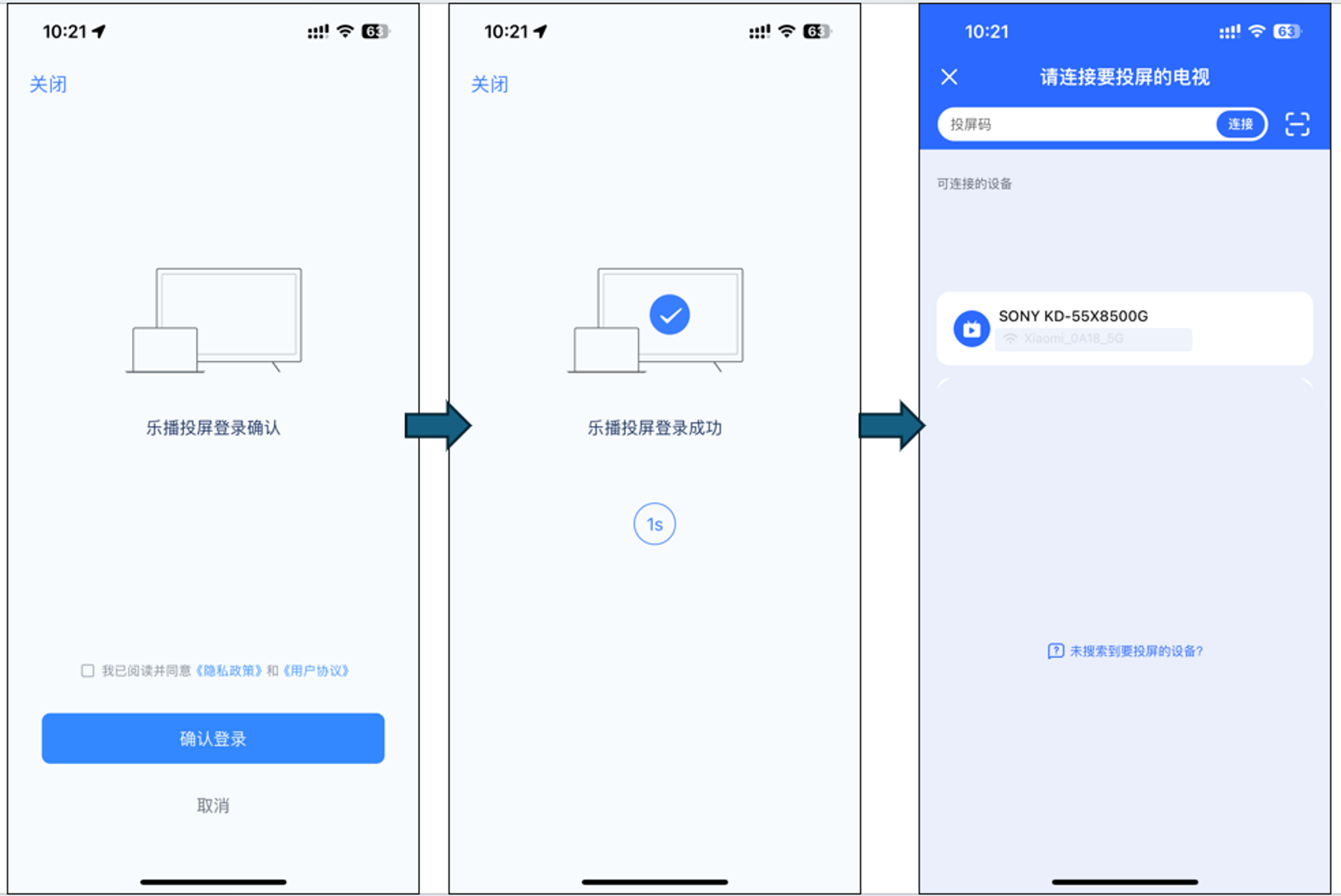 - 重启电视机 和 移动设备(手机/Pad等)后再尝试。电视机重启方法:长按遥控器上的“电源”键5秒以上,电视机将会自动重启;
