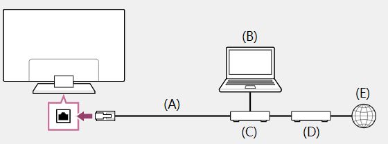 A: LAN电缆(网线) B: 计算机 C: 路由器 D:调制解调器 E: 互联网