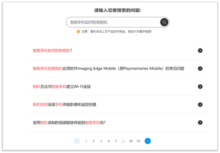 例如:您的问题是“如何将电视机通过无线的方式连接到网络?”如果输入“网络”搜索不到想要的结果。可尝试只使用“无线”作为关键字进行搜索。