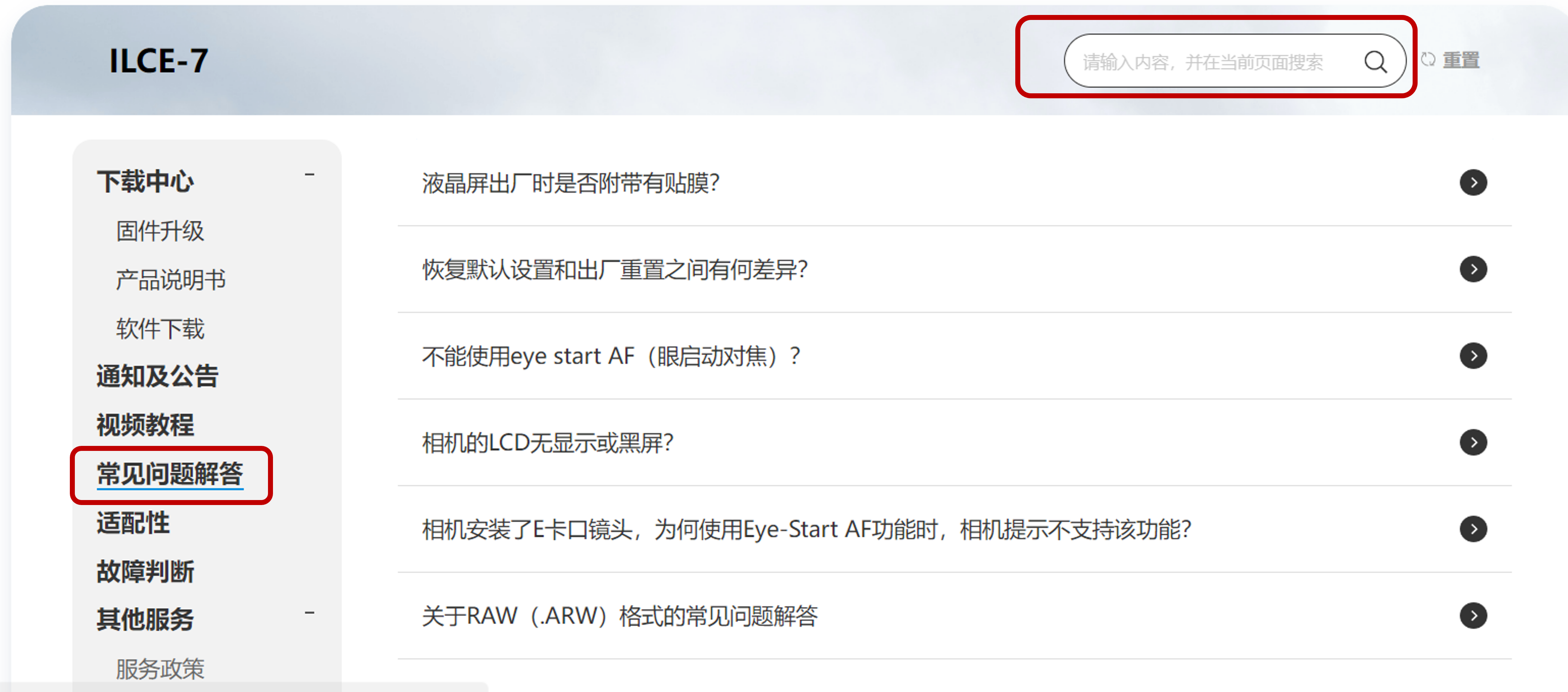 1. 登陆索尼服务与支持网站 https://service.sony.com.cn/index.html